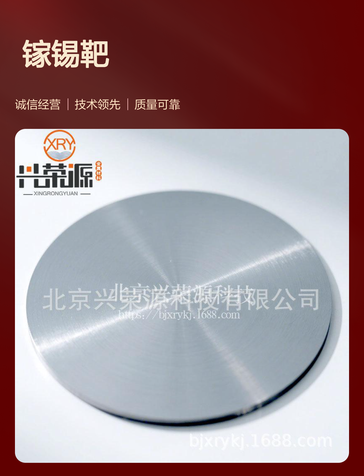 北京作为中国科技创新的重镇之一,聚集了大量电子新材料研发资源和应用市场,北京兴荣源科技有限公司依托丰富的生产工艺经验和严苛的品质管理体系,成为镓锡合金靶供应的lingxian企业。公司不仅提供标准GaSn5和GaSn30靶材,还支持客户个性化定制,满足不同设备和应用需求。