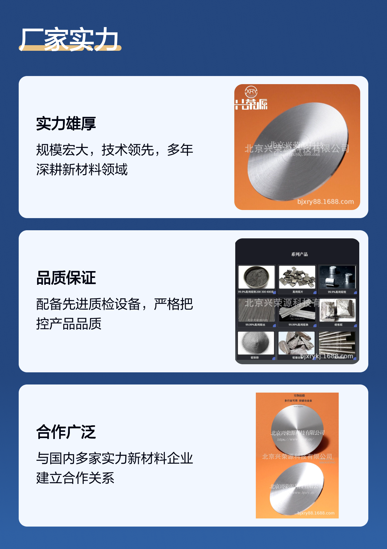 未来,随着精密设备对材料性能需求的提高,铌钽合金靶的研发与应用将持续深入。选择北京兴荣源科技有限公司的铌钽合金靶,意味着选择了质量保障与技术支持,为您的研发和生产提供坚实基础。