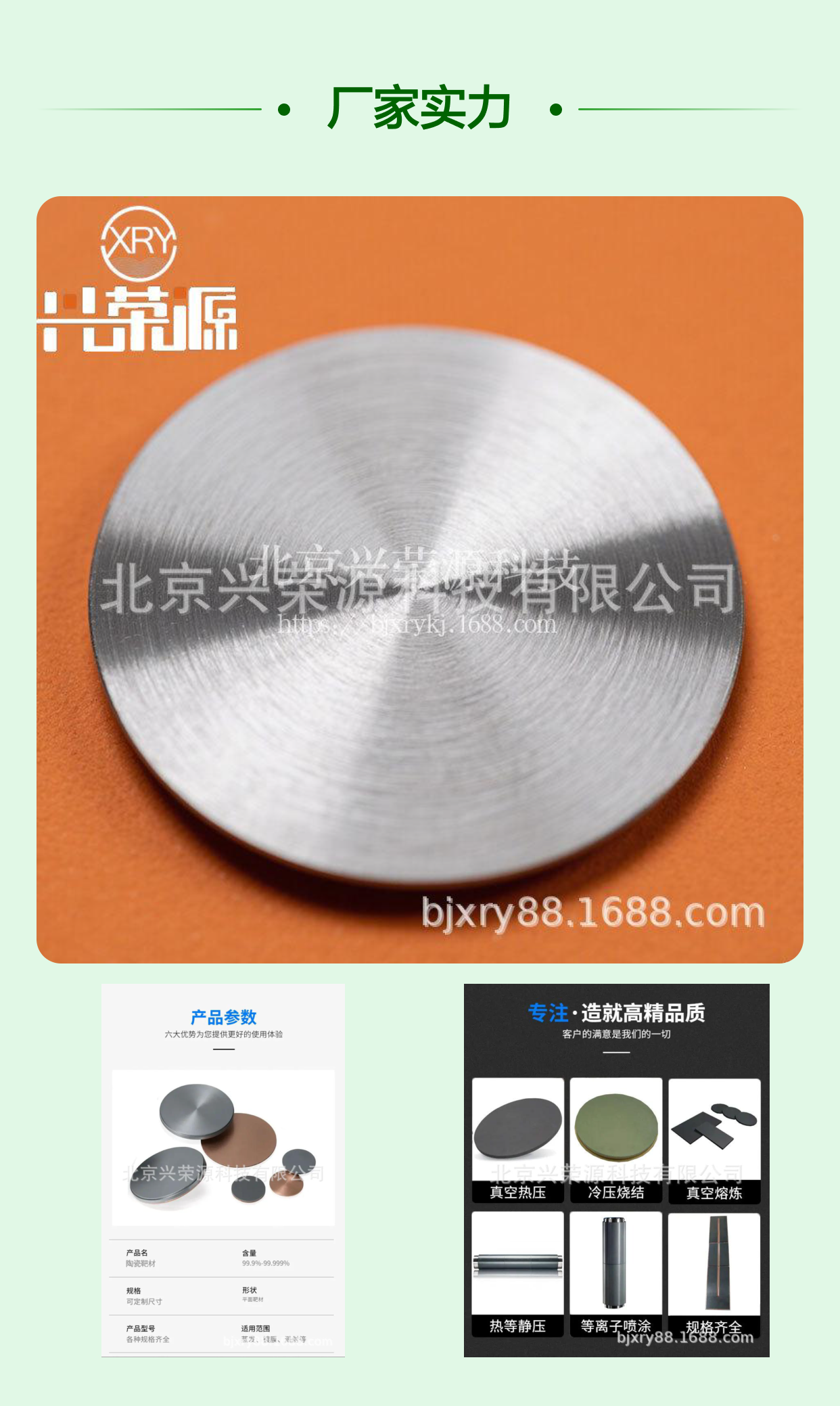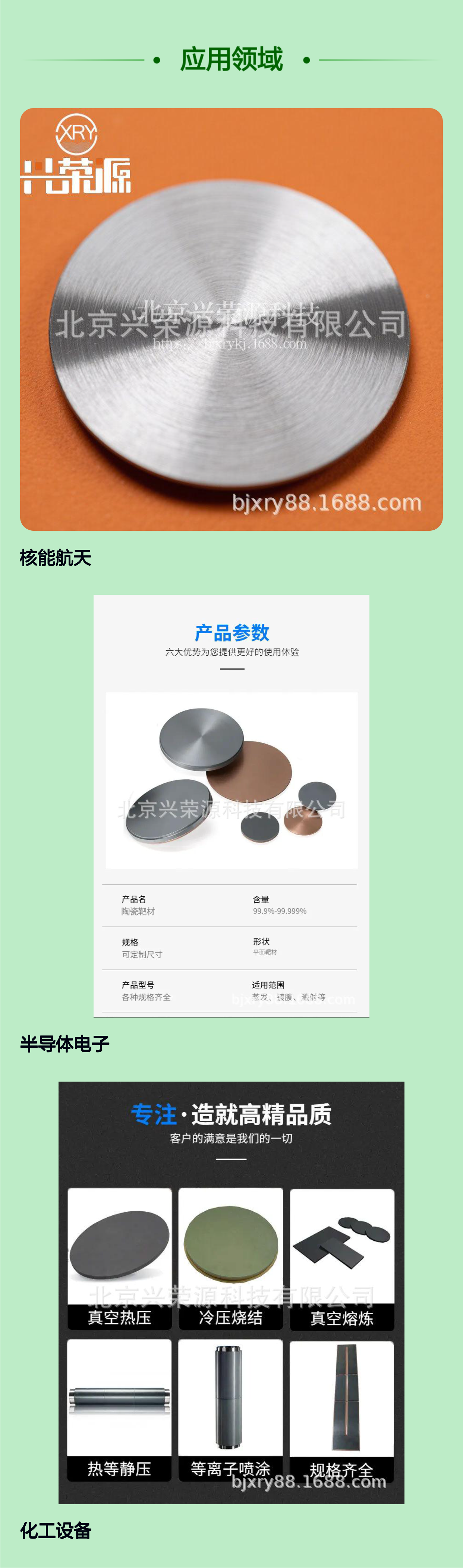 核能与航天领域要求材料能承受极端环境,钽钨合金靶因其熔点远高于常规合金,出色地解决了高温条件下材料稳定性的问题。无论是在核反应堆的辐射屏蔽组件,还是航天器关键部件,钽钨合金靶都能保持结构完整性,防止因热应力导致的损坏。这也是北京兴荣源科技有限公司钽钨合金靶成为行业优选的重要原因。