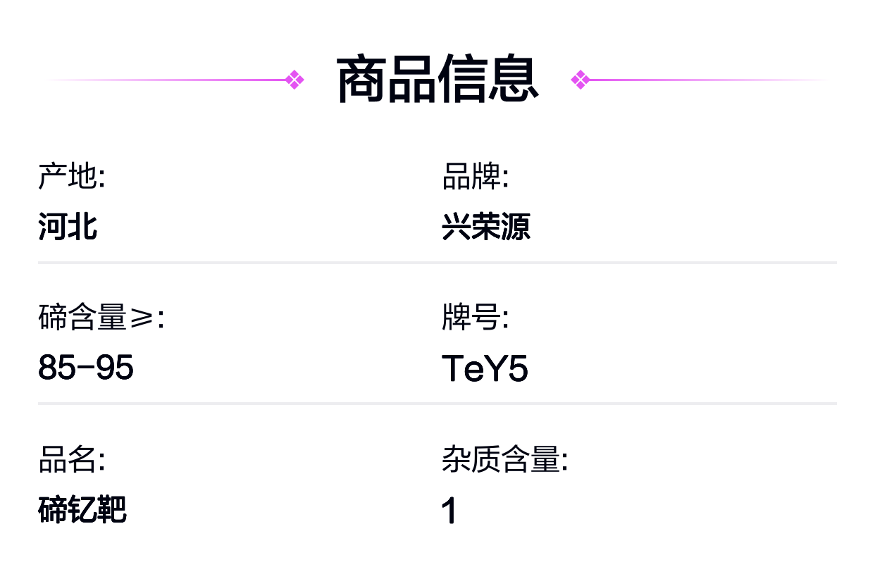 碲钇合金靶TeY5 高纯材料 适配红外探测器 温差发电应用
