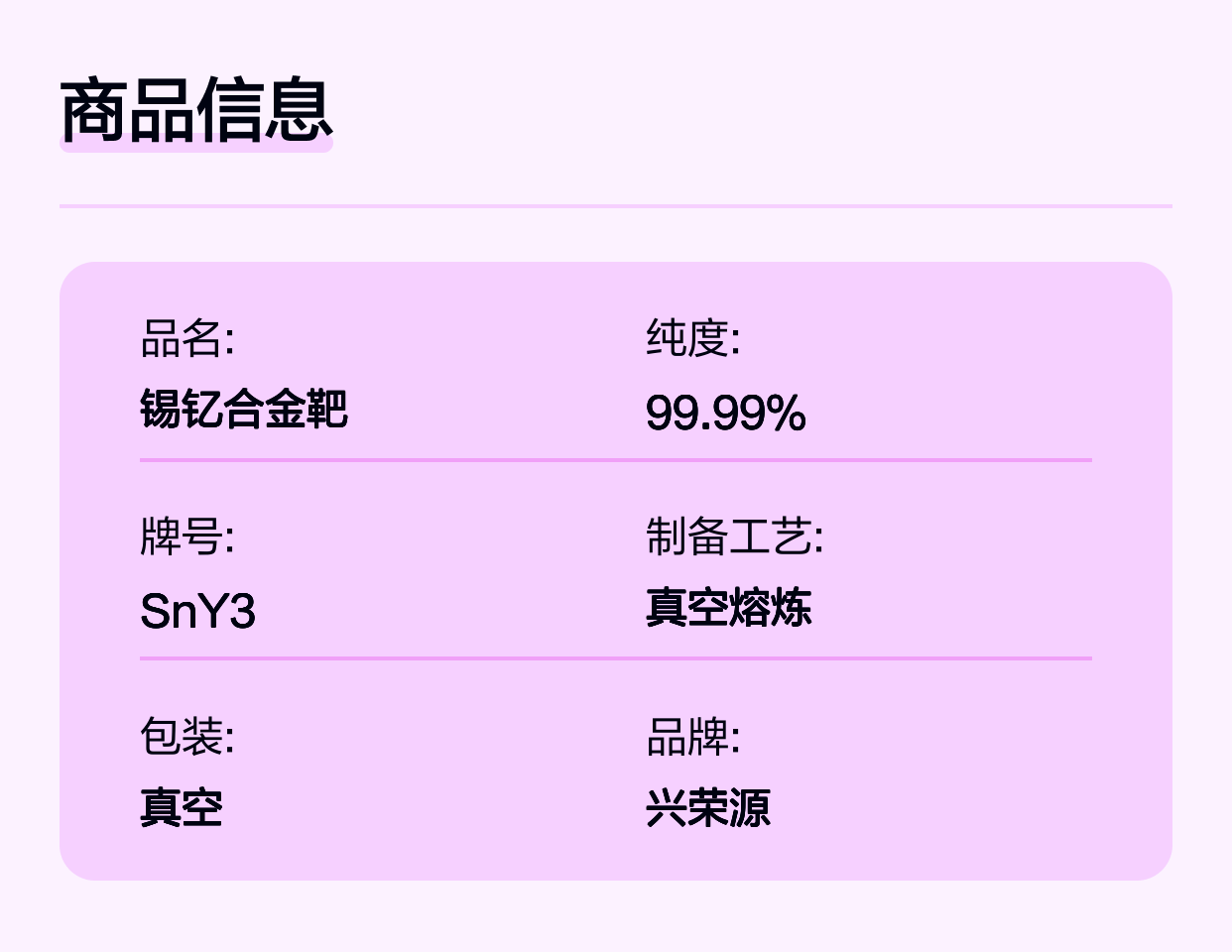无论是科研机构还是生产制造企业,选择北京兴荣源科技有限公司的锡钇合金靶都是提升产品竞争力的重要一步。