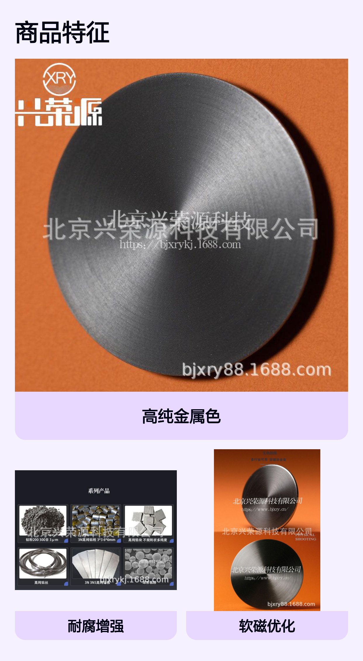 - 高磁性能:钴成分保证了良好的磁导率,满足高密度磁记录需要。