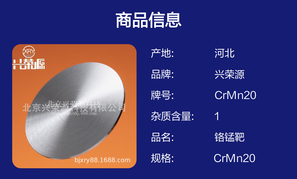 欲了解更多关于铬锰靶的技术参数和采购方案,建议联系北京兴荣源科技有限公司,获取专业的个性化服务与咨询支持。