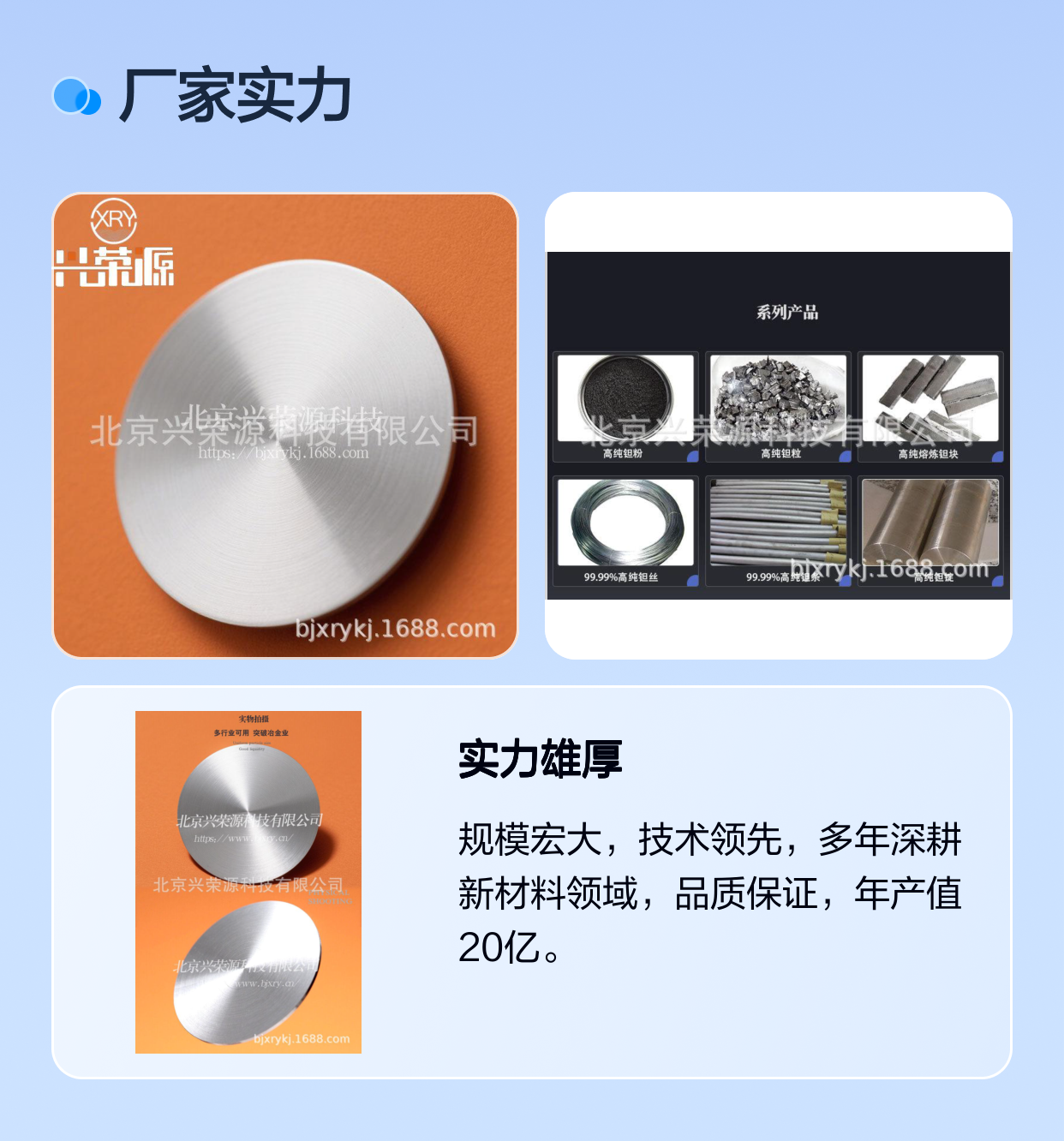 北京兴荣源科技有限公司凭借专业的研发能力和完善的生产工艺,为客户提供性能稳定、质量可靠的铜镁靶产品。公司的优势包括: