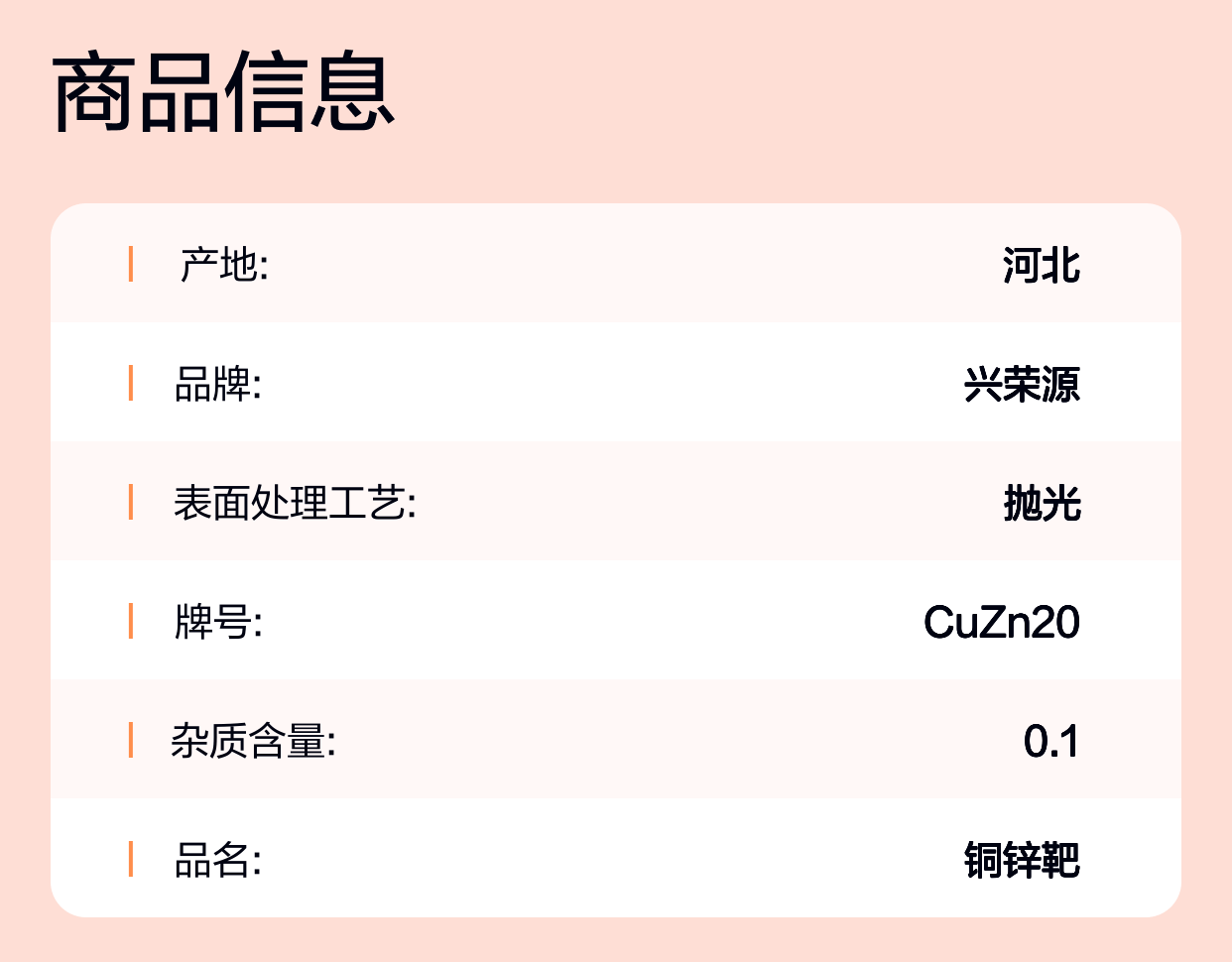 • 高纯度保证:兴荣源科技提供的铜锌合金靶CuZn2099.95%,确保每一批产品的纯净无杂质,适应各行业高标准需求。