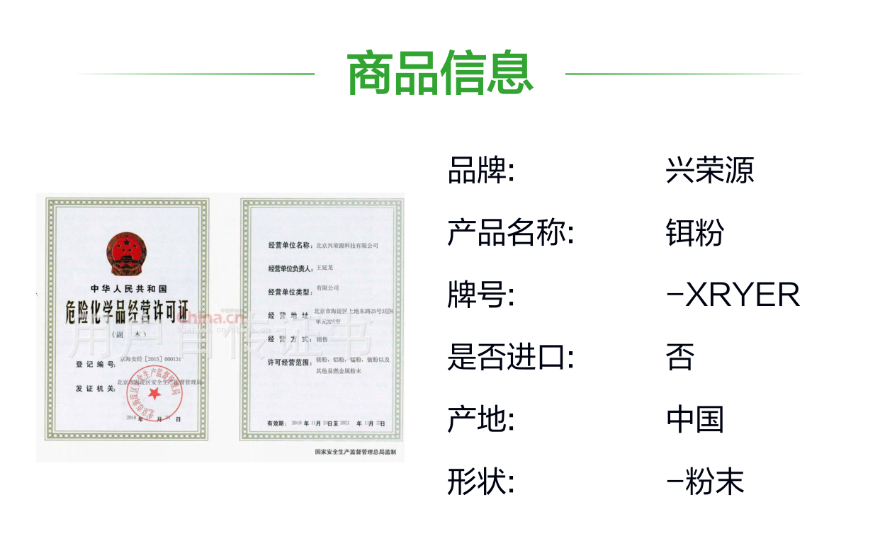作为专业的稀士金属粉末供应企业,北京兴荣源科技有限公司在金属铒与铒粉产品上具备多年经验和稳定的技术积累。公司的产品质量严格按照国家及guojibiaozhun执行,确保每一批产品性能符合客户要求。
