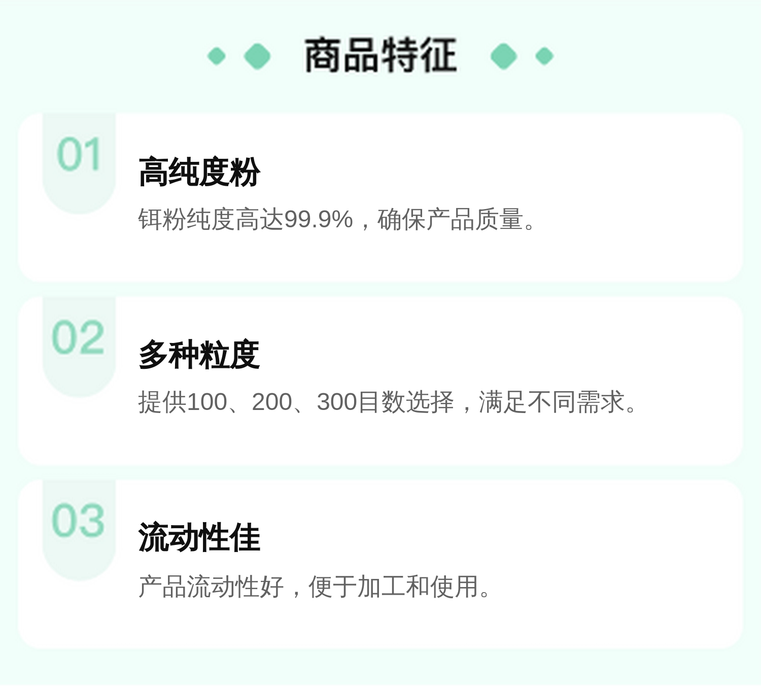 - 高标准的质量把控,确保粉末纯度和粒径均匀
