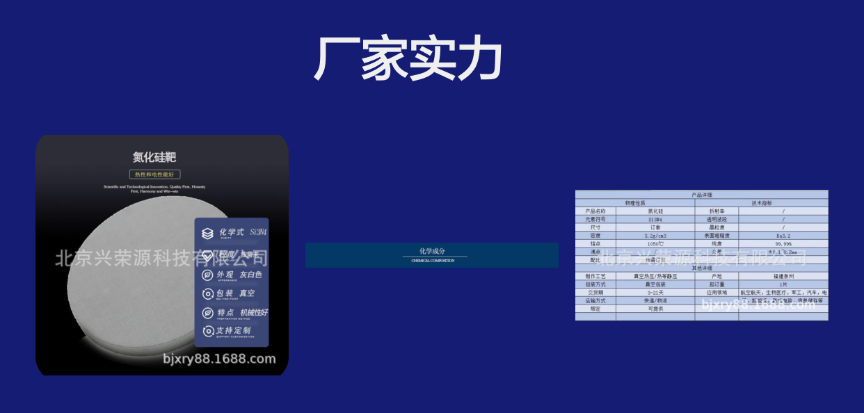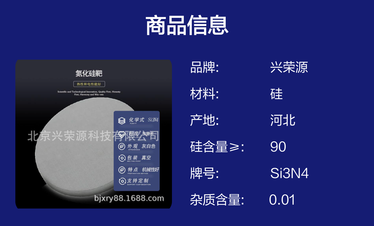 考虑到工业自动化和生产效率的提升,客户对靶材的一致性和稳定性的要求越来越高,北京兴荣源科技有限公司正致力于持续创新,提供符合未来市场需求的氮化硅靶产品。