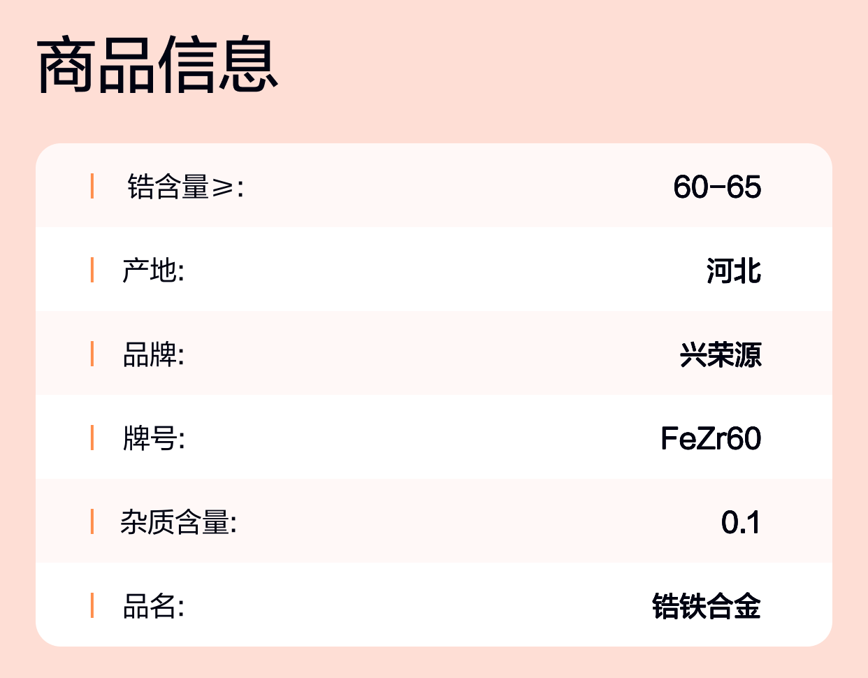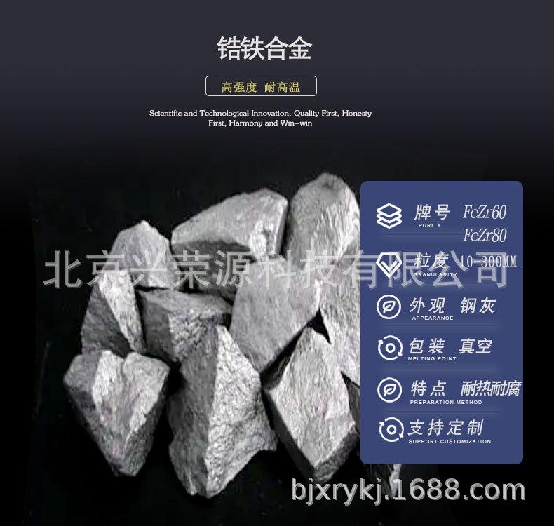 北京兴荣源科技有限公司作为业内lingxian的铁合金生产商,拥有完善的生产工艺和严格的质量控制,保证每批锆铁块FeZr60的纯度和成分稳定。公司生产的FeZr60不仅满足常规含锆量要求,还能根据客户需求调整合金成分,适应不同工艺流程。