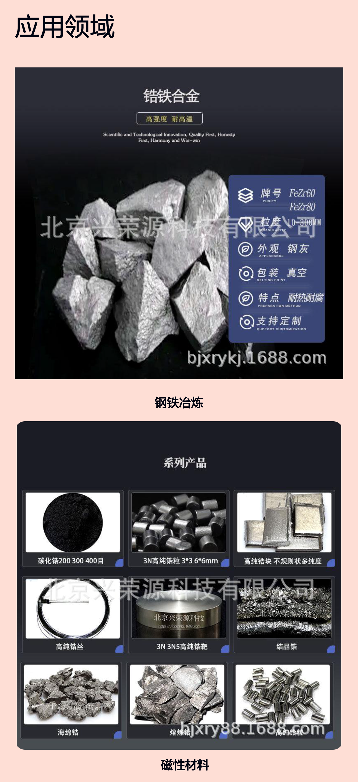 锆铁块(FeZr60)作为一种重要的锆铁中间合金,在钢铁冶炼及磁性材料领域的应用越来越广泛。作为北京兴荣源科技有限公司主推的产品,FeZr60铁合金不仅在性能上展现出独特优势,也满足了当前工业生产对高品质中间合金的需求。本文将从多角度探讨锆铁块FeZr60在钢铁冶炼与磁性材料中的作用及应用价值。