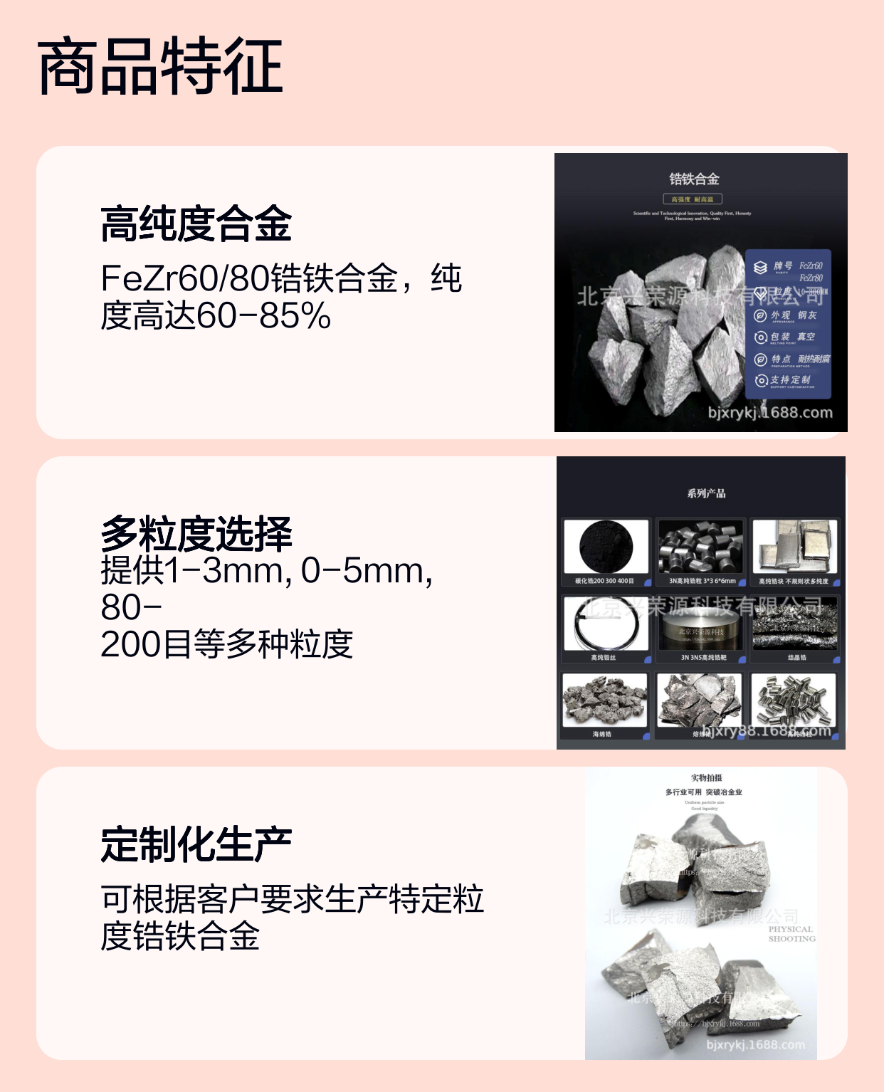 - 耐高温合金生产:FeZr60经常用于生产耐高温合金,是制造航空航天、能源设备中关键材料的基础合金。