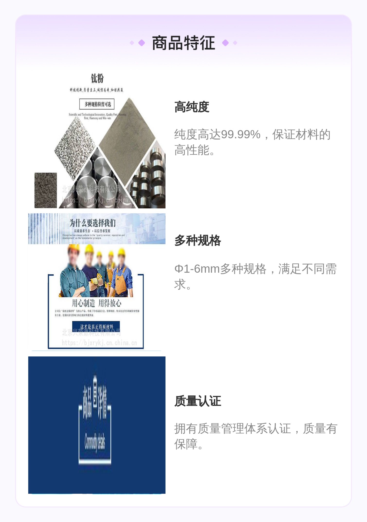 - 技术支持全程跟踪:公司配备专业技术团队,为客户提供钛丝选型建议和使用指导,帮助实现材料性能的Zui优发挥。