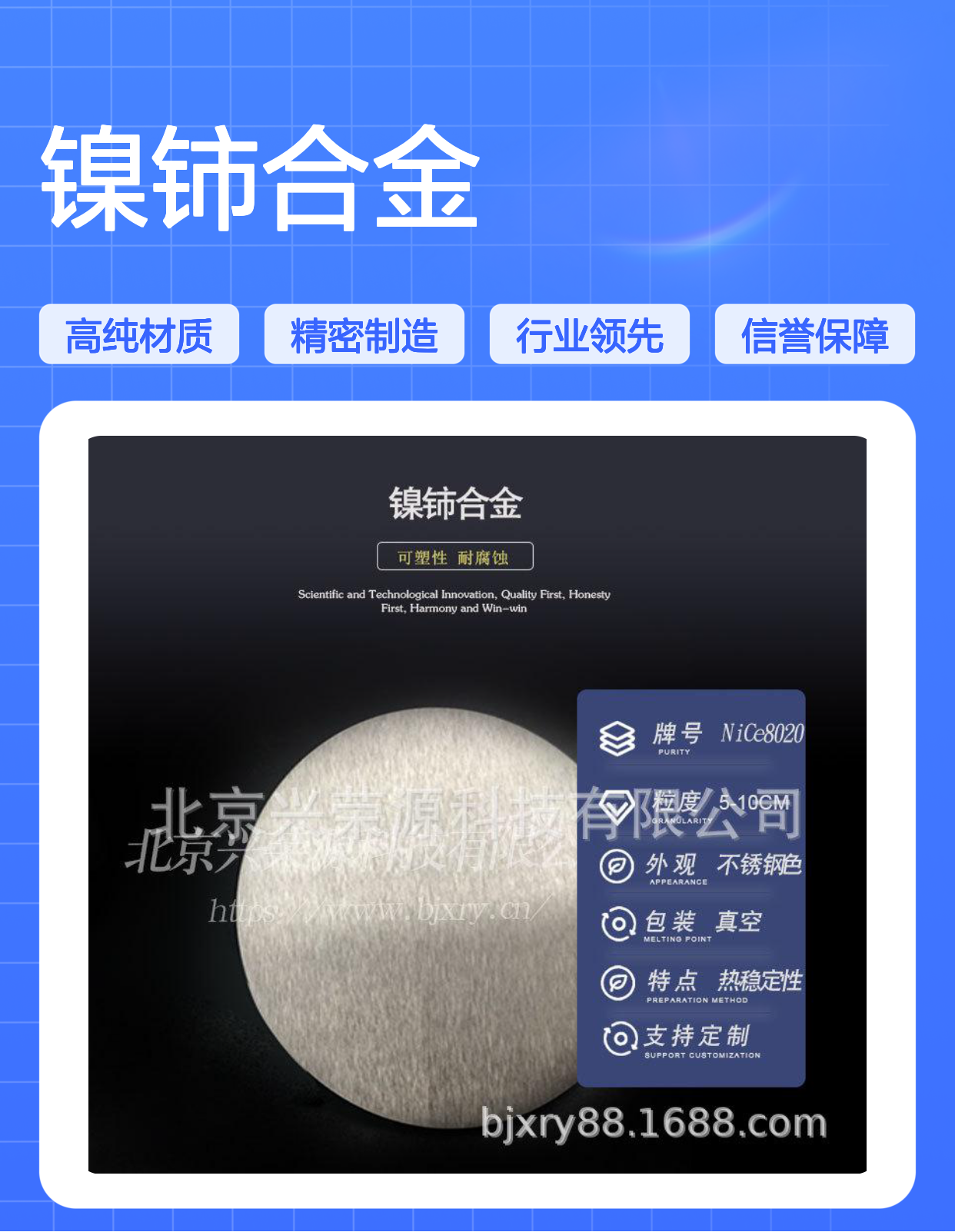 为什么选择北京兴荣源科技有限公司的NiCe8020镍铈合金?