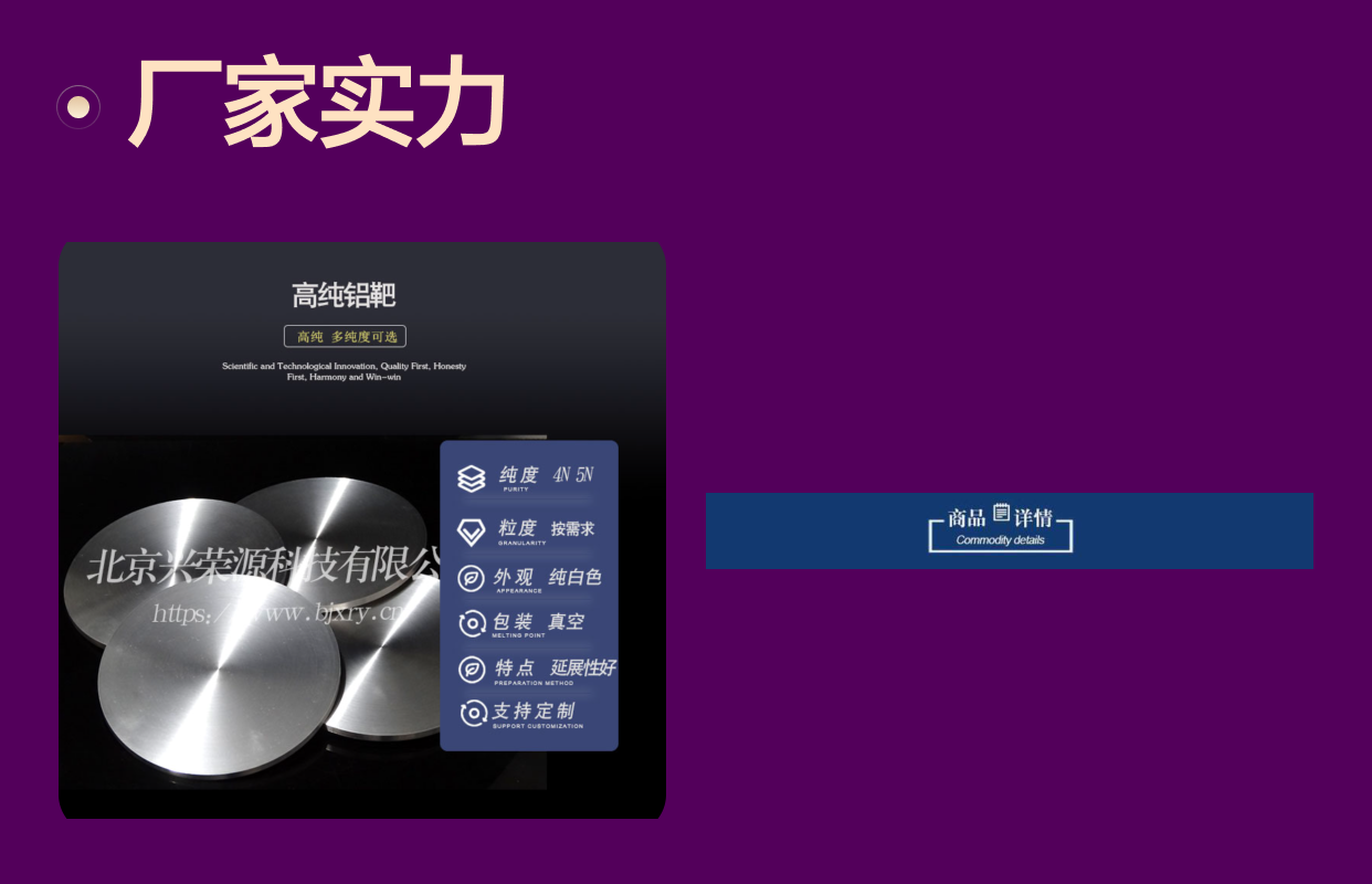 - 北京兴荣源科技有限公司拥有完善的生产和质检体系,确保每一批铝靶的性能一致性。