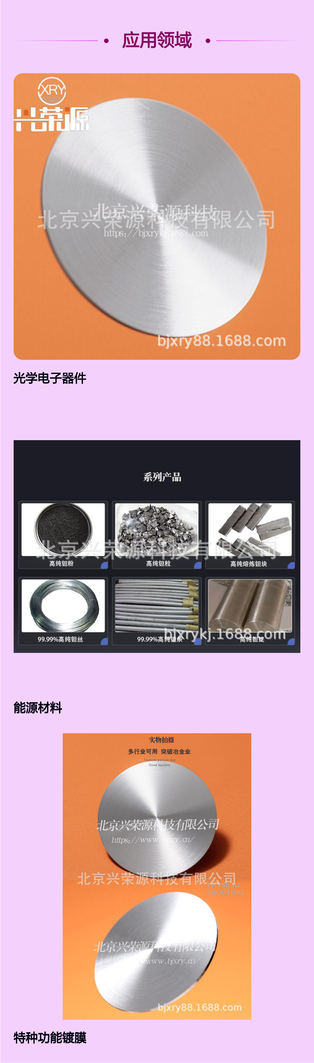- 高纯度保证:北京兴荣源科技有限公司采用先进的熔炼和真空冶金技术,确保镁钡靶纯度达到99.99%以上,减少杂质对镀膜质量的影响,提高成膜均匀性和附着力。