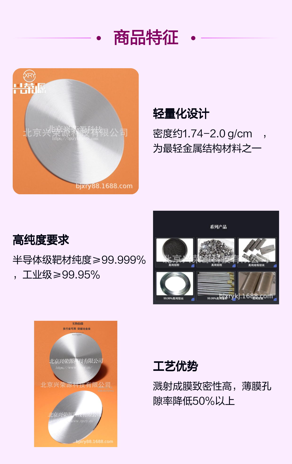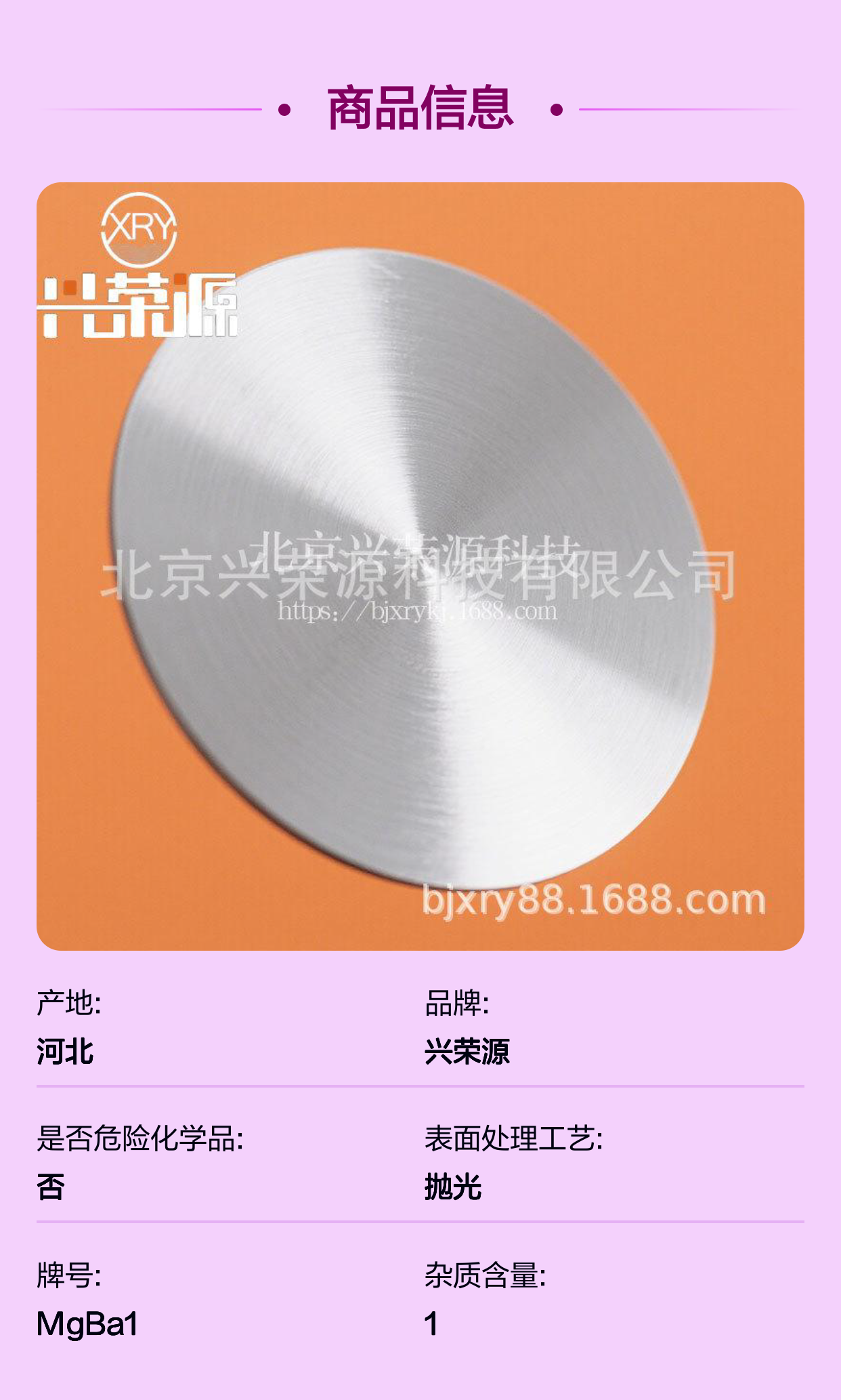 选择北京兴荣源科技有限公司的镁钡合金靶,将助力您的产品性能跃升,为电子工业和航空航天带来更坚实的品质保障。