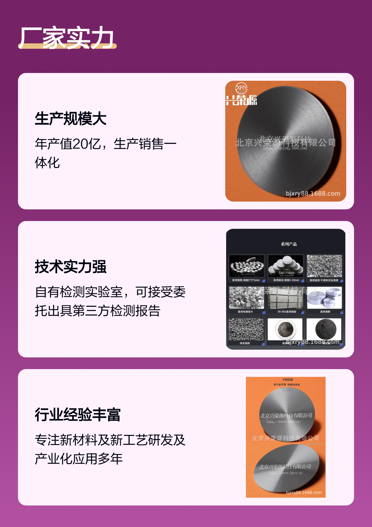 综合来看,铬碲合金靶Cr2Te3的出色表现为电子、信息、能源等行业带来了实质性突破。无论是研发还是批量生产,北京兴荣源科技有限公司的铬碲靶产品均能满足现代制造业对高性能材料的需求,助力企业提升产品竞争力。