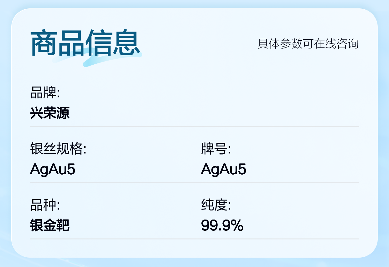 银金合金靶AgAu5作为一种重要的功能材料,正逐渐成为半导体封装、高端装饰镀膜以及柔性电子领域的关键选择。北京兴荣源科技有限公司凭借先进的研发能力和严格的质量控制,推出的银金合金靶(银金靶)AgAu5,不仅性能优异,且在实际应用中展现出广泛的潜力。本文将从多个角度探讨银金合金靶AgAu5的优势、应用以及未来趋势,助力相关行业了解并选择适合的材料方案。