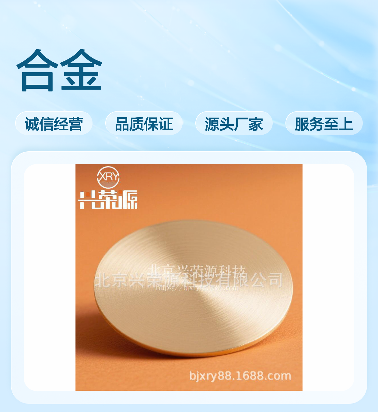 不少用户关注银金合金靶的主要成分,却容易忽略生产工艺和靶材纯度的重要性。北京兴荣源科技有限公司坚持使用高纯度原料和严格工厂管理,确保每片银金靶厚度均匀,无杂质夹杂,极大地提升产品成膜质量和工艺稳定性。