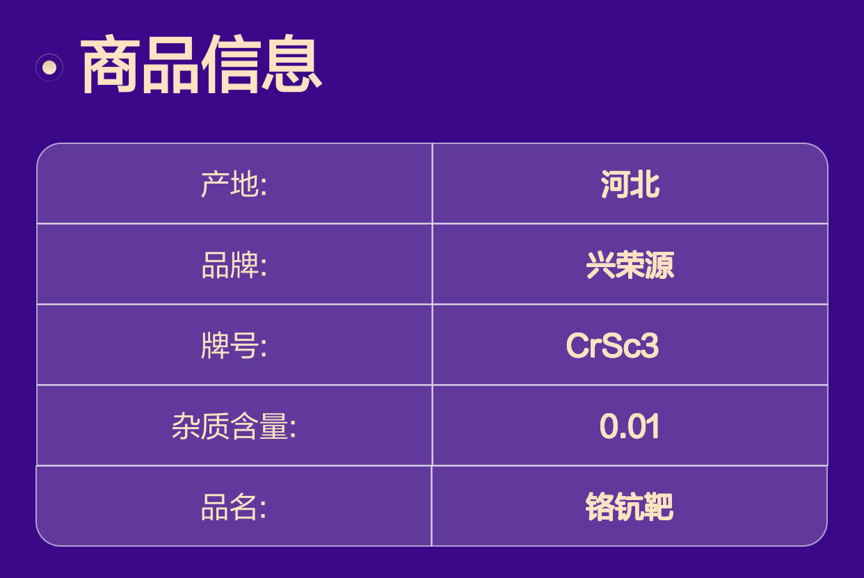 这不仅保障了铬钪靶的高性能表现,也为客户提供了稳定可靠的材料基础。