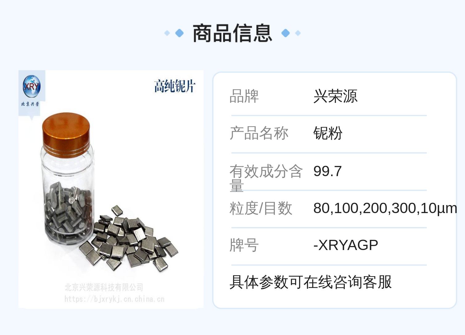 - 品质保障:99.9%高纯铌粉,纯度优于行业平均水平。