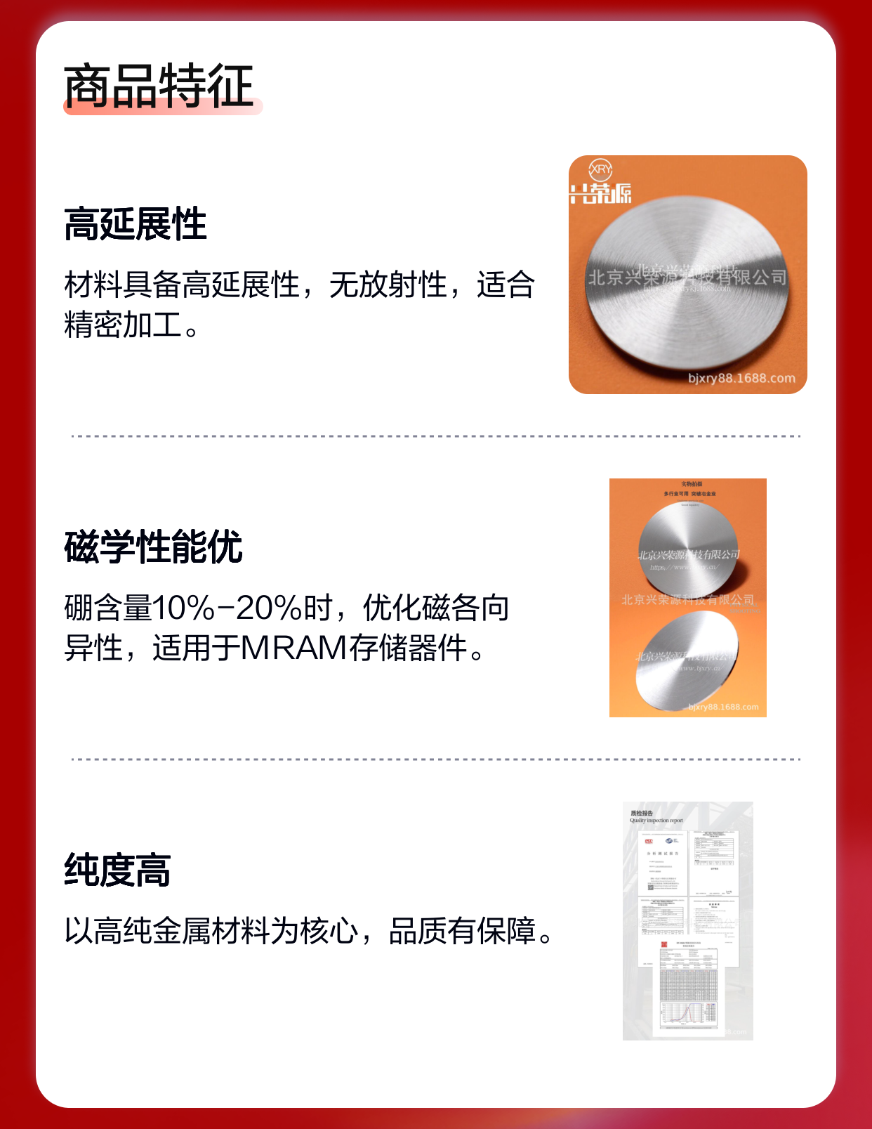 北京兴荣源科技有限公司提供的钴硼合金靶在尺寸和成分控制上具备一定优势,能够满足不同磁存储设备对薄膜性能的精细化需求,助推中国磁存储产业向高端方向发展。