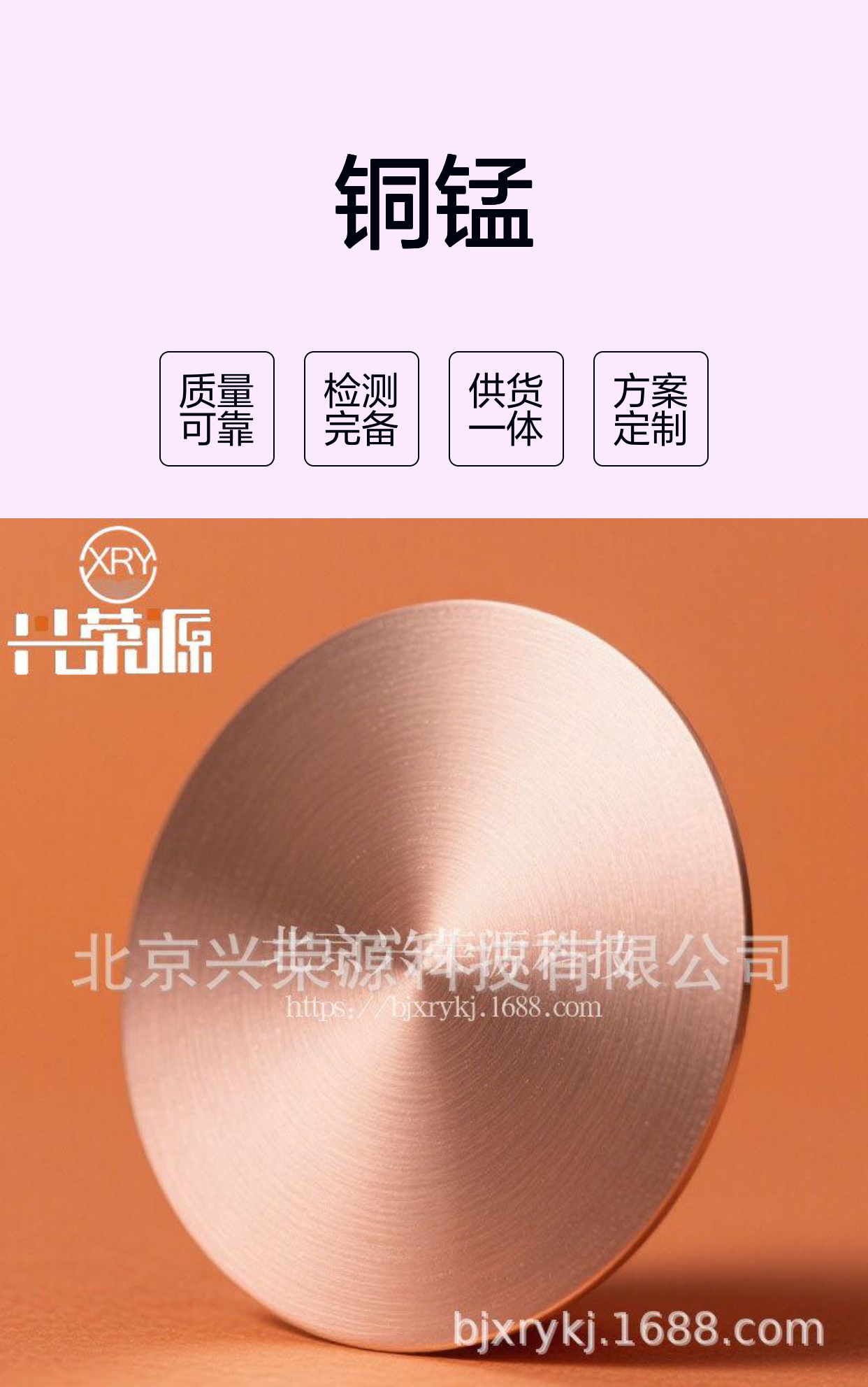 在半导体制造领域,精密电阻薄膜的性能直接影响芯片的稳定性和可靠性。铜锰靶作为制备高品质电阻薄膜的核心材料,正逐渐成为业内关注的焦点。北京兴荣源科技有限公司旗下的铜锰合金靶产品,涵盖CuMn3至CuMn15系列,含锰比例在3%至15%之间,满足了半导体互连层在不同工艺条件下对电阻值和薄膜性能的多样化需求。