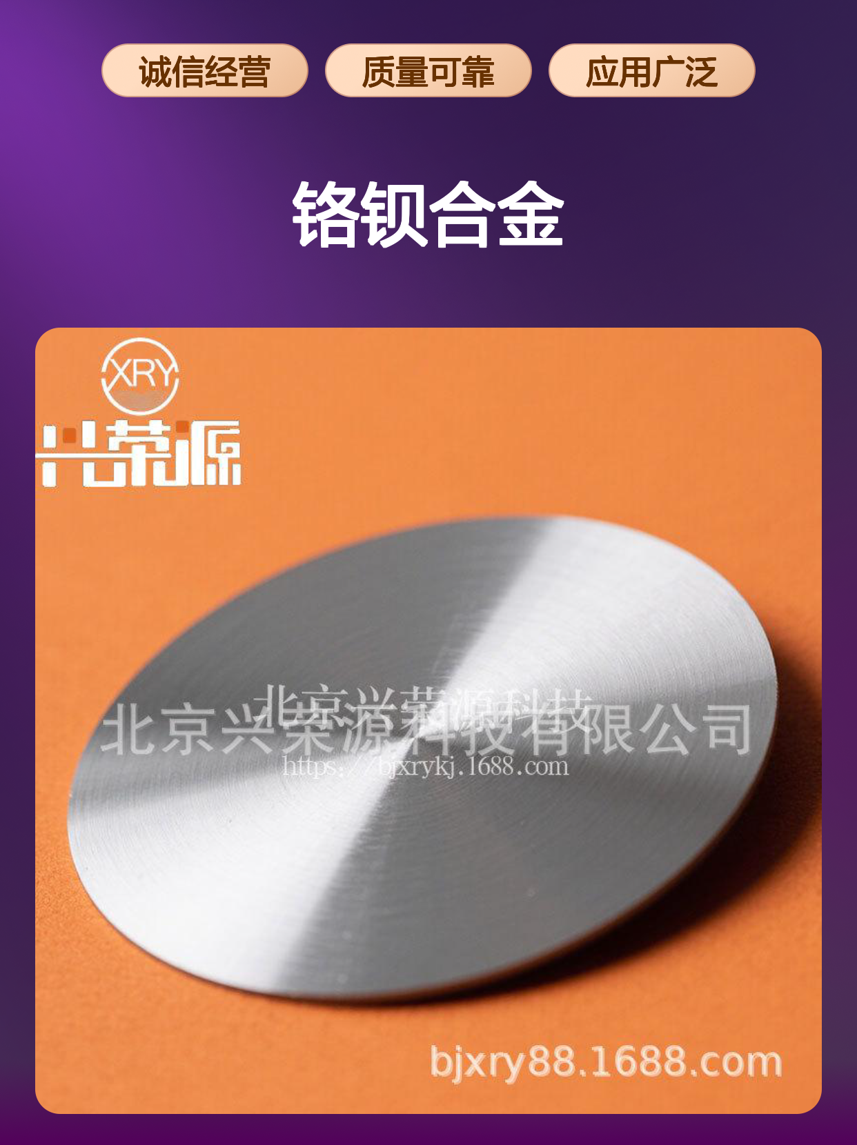 铬钡合金靶的纯度直接影响Zui终功能性涂层的性能。杂质含量过高可能导致镀膜层出现裂纹、缺陷甚至失效。北京兴荣源科技有限公司生产的高纯铬钡合金靶,严格控制原材料来源和冶炼工艺,确保杂质含量极低,化学成分均匀稳定,成膜效果更佳: