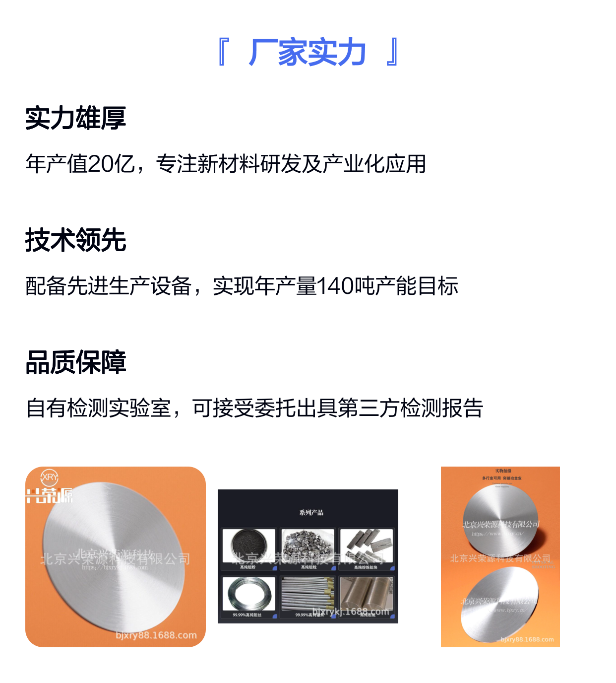 北京兴荣源科技有限公司凭借先进的合金熔炼技术和严格的质量管控体系,实现了合金靶制造工艺的持续优化,确保产品性能满足各类高端应用的需求。