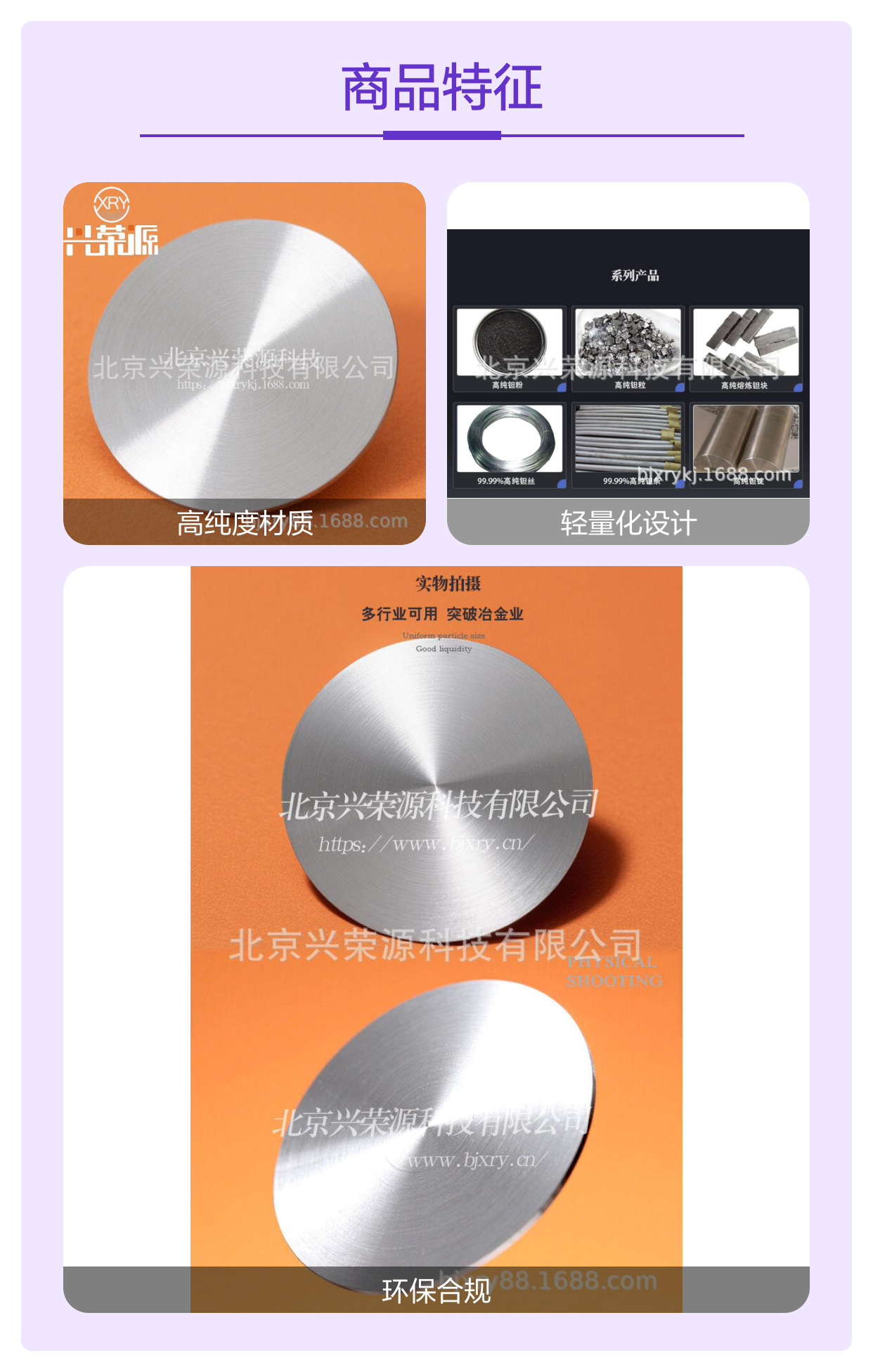 锌和铝均为地壳丰富的金属元素,锌铝合金靶不仅性能稳定,符合环保要求。北京兴荣源科技有限公司注重绿色制造,生产过程强调资源循环利用和废弃物处理,确保产品在满足高性能标准的也符合现代环保理念,这对于推动电子和新能源产业的绿色转型具有积极意义。