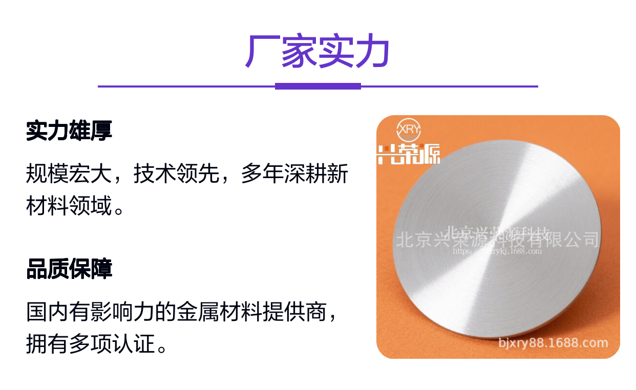 选择北京兴荣源科技有限公司锌铝合金靶的理由