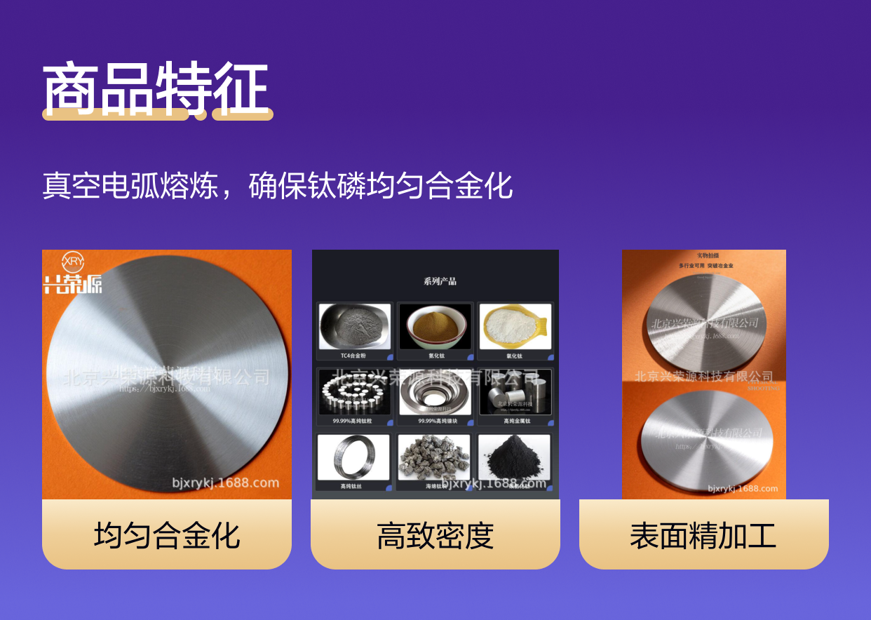 北京兴荣源科技有限公司生产的钛磷合金靶通过精准控制元素比例,确保了产品的稳定性和可重复性,极大保证了镀膜工艺的高效与稳定。