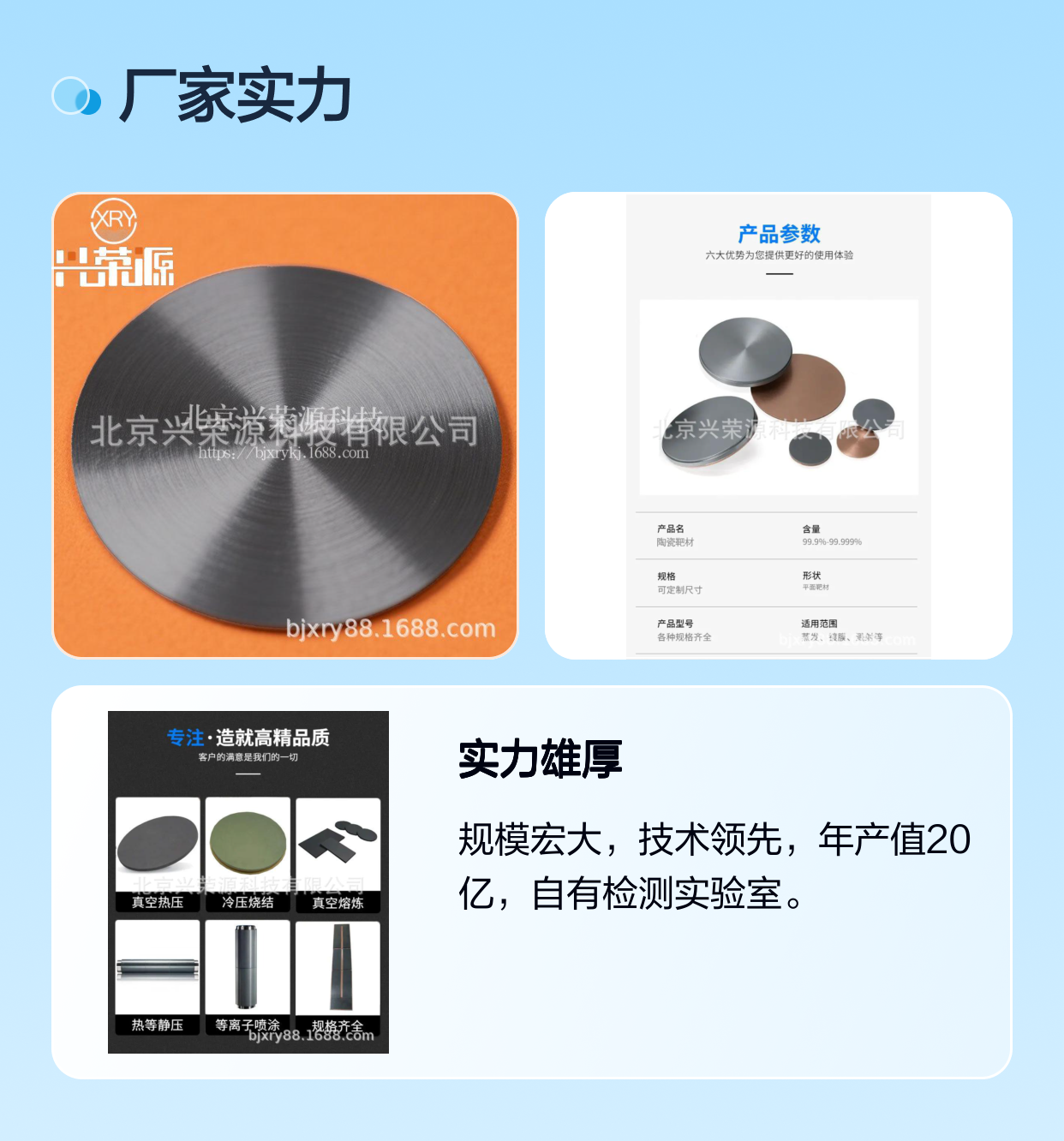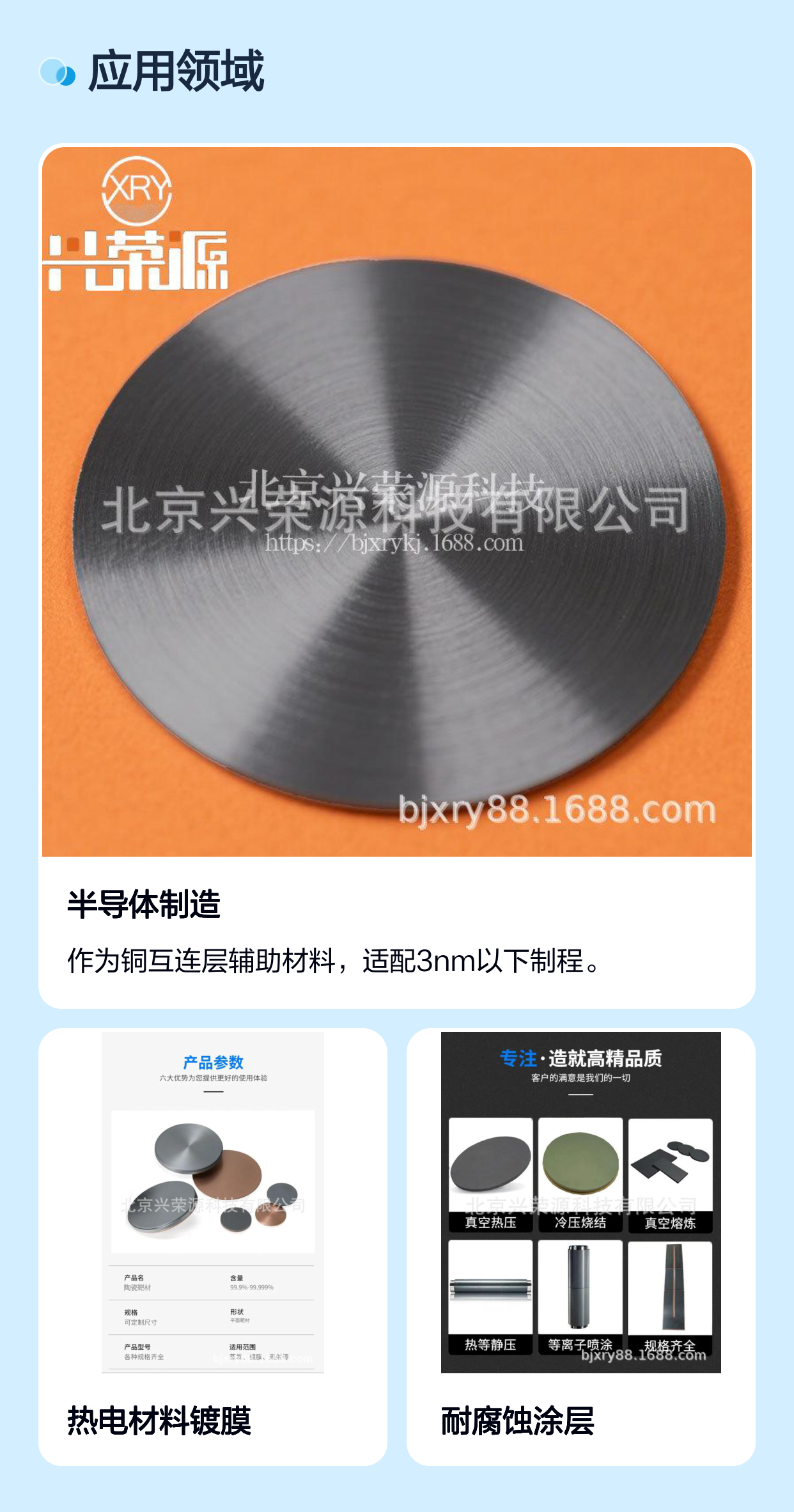 钽锑合金靶TaSb5集合了高熔点、稳定耐腐蚀与优异光电性能,成为半导体制造中关键的功能材料。选择北京兴荣源科技有限公司生产的钽锑靶,不仅是选择一个优质产品,更是选择专业的技术支持和品质保障。面对日益追求性能与成本平衡的制造需求,钽锑合金靶无疑是材料选择中的理想方案。