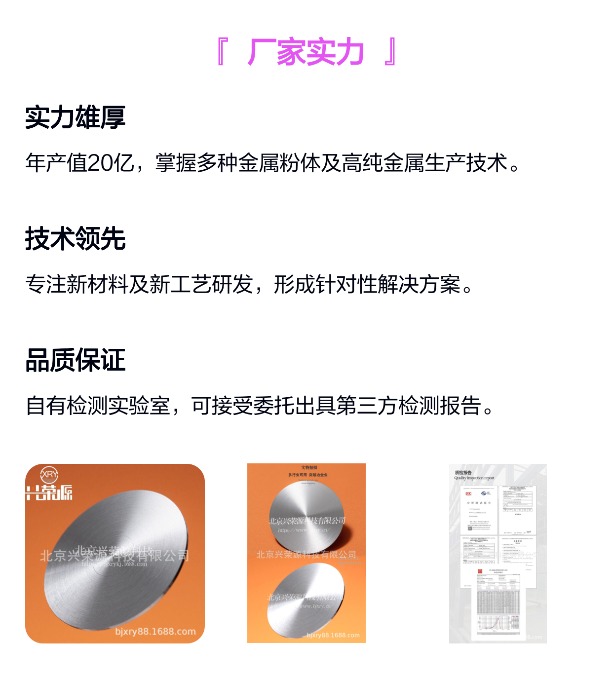 随着数据存储需求的不断增长和电子器件性能提升的驱动,铁锡合金靶的市场需求持续攀升。其作为磁记录设备及高端电子器件制造的重要原料,价值逐年凸显。选择北京兴荣源科技有限公司的铁锡合金靶,不仅能够满足现有工业需求,还能够为未来新兴应用领域提供强有力的材料支持。