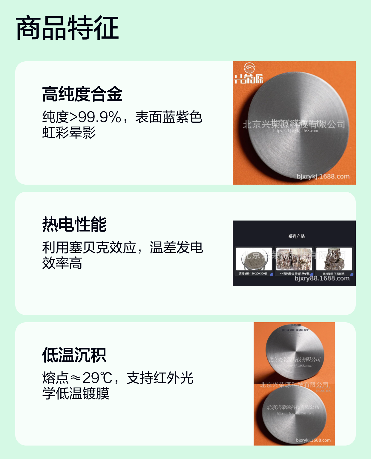 如果您正在寻找性能稳定、纯度高的镓铋靶材料,北京兴荣源科技有限公司愿为您提供专业的解决方案。了解更多产品信息,迈向半导体热电材料领域的新高度。