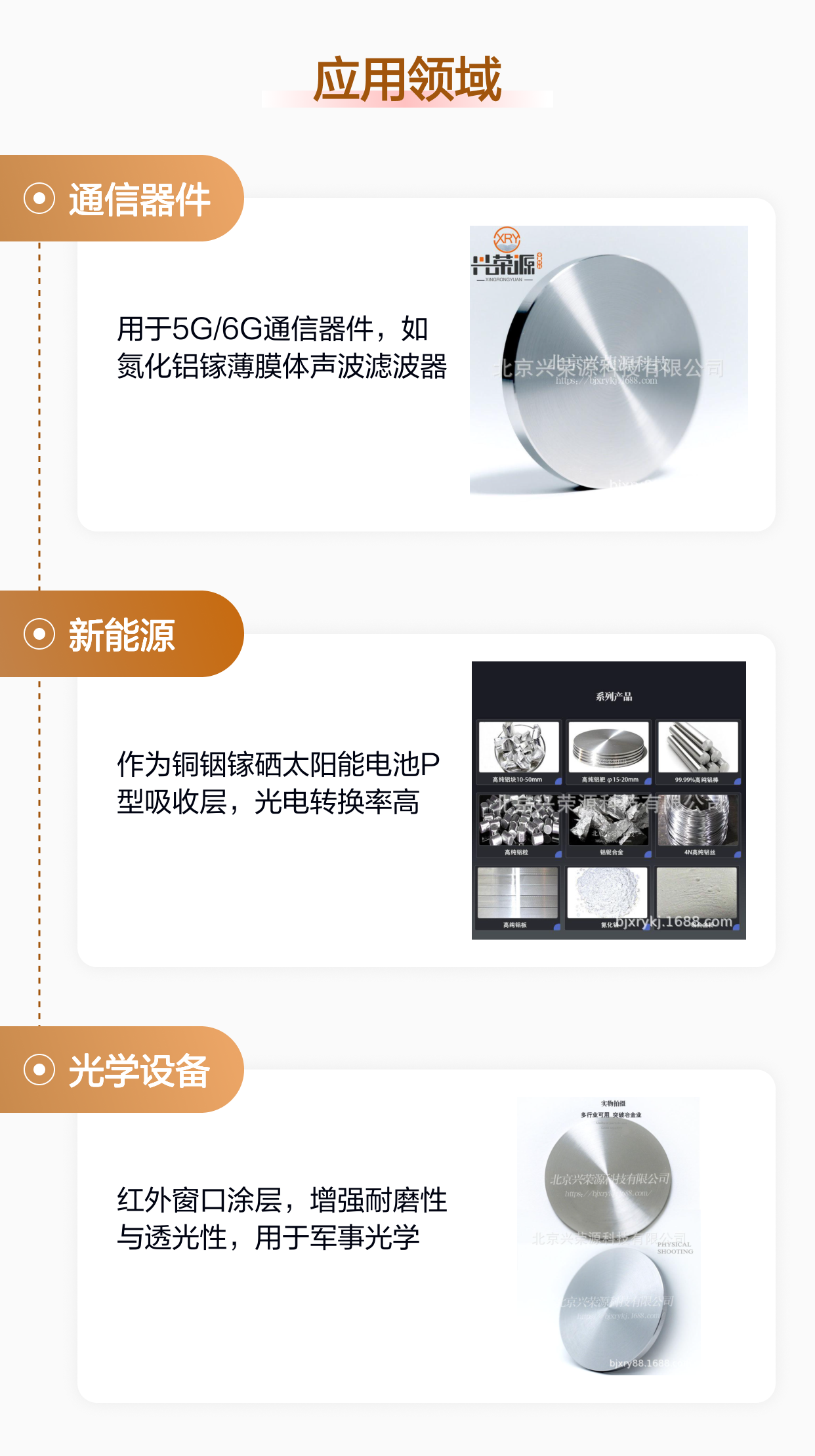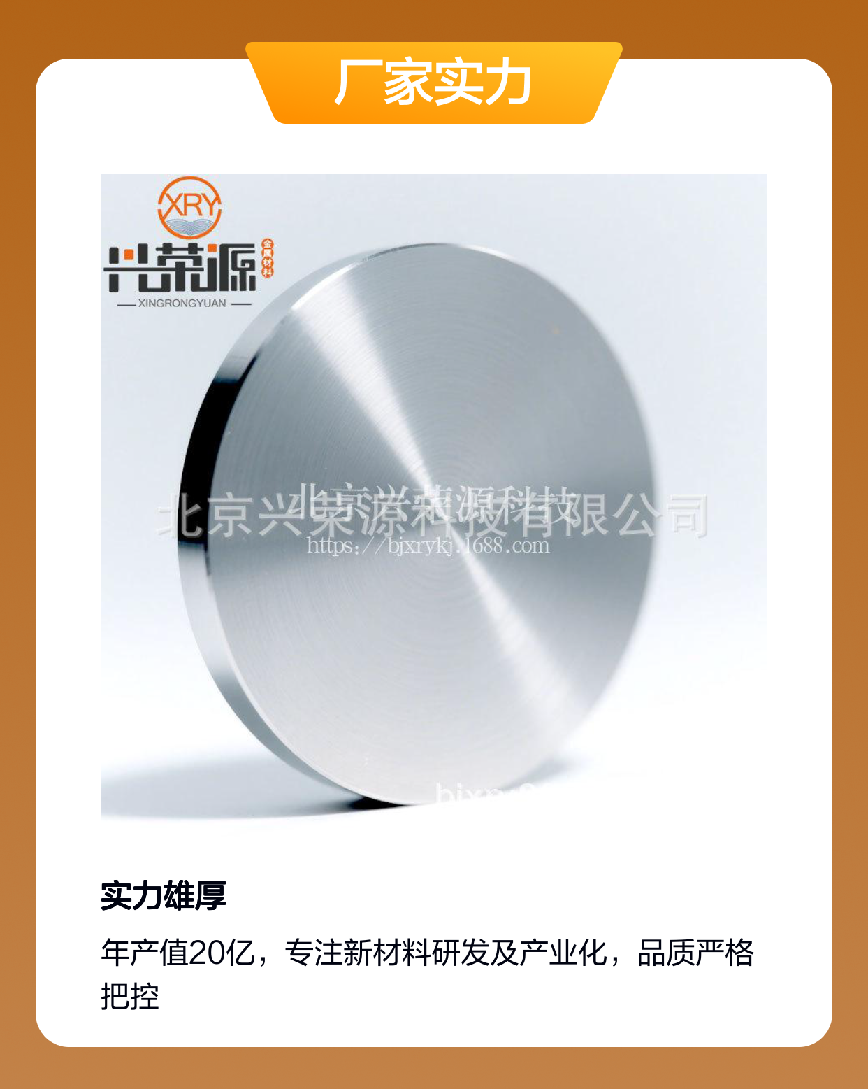 随着新兴技术的发展,对材料性能提出更高要求的情况下,耐腐蚀且高导电的铝镓合金靶显得尤为重要。北京兴荣源科技有限公司通过持续优化合金配比和工艺,为高端导体器件提供坚实的材料基础。