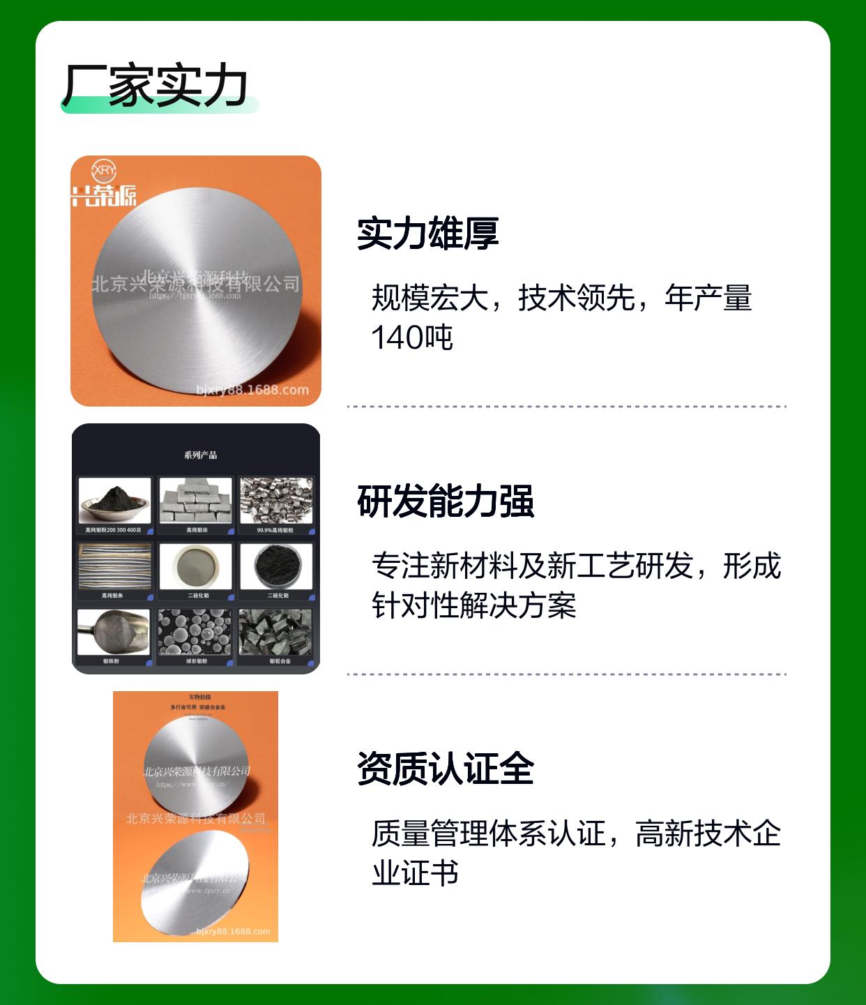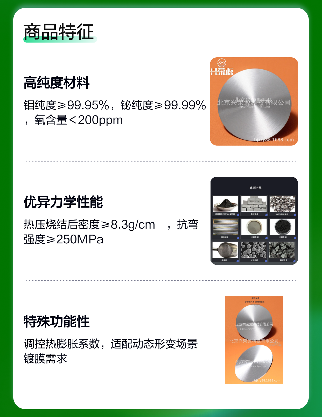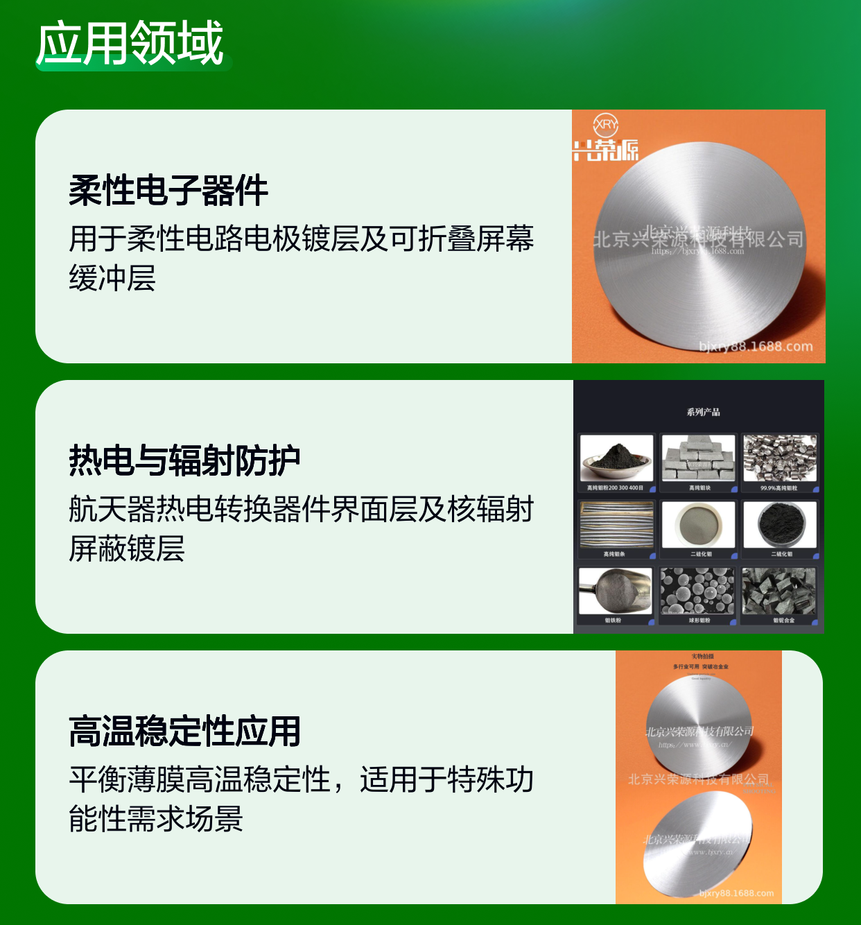 北京兴荣源科技有限公司采用先进的粉末冶金及真空熔炼技术,确保钼铋合金靶的均匀性和致密度,保障产品性能稳定。