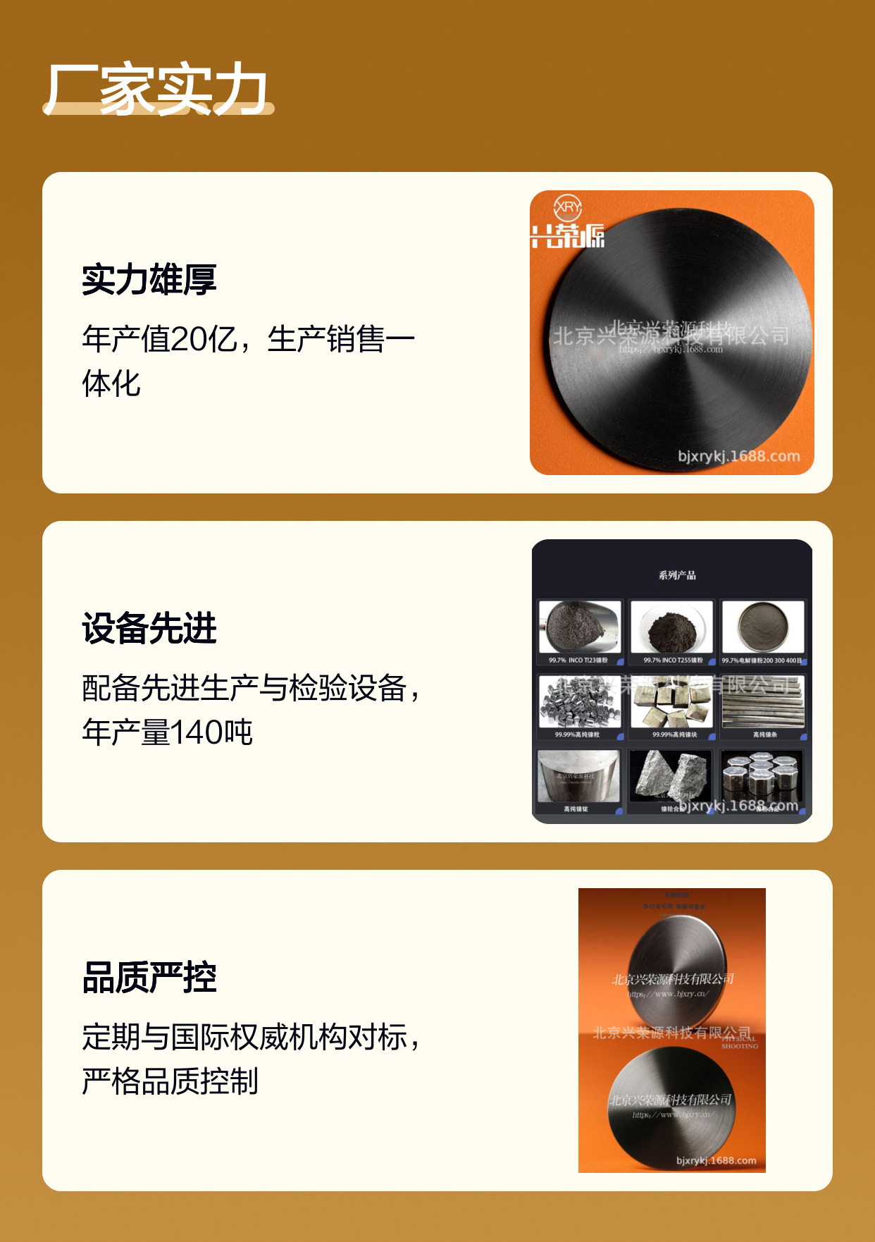 北京兴荣源科技有限公司专注于镍磷合金靶的研发与制造,其先进的生产工艺确保NiP8和NiP20镍磷靶在化学成分、结构密实度及表面均匀性等方面达到xingyelingxian水平。公司严格的质量管理体系和全面的检测手段保证每一块镍磷靶的性能稳定。